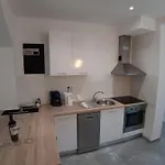 Eine voll ausgestattete Küchenzeile mit einem Wasserkocher, einem Kühlschrank und einem Herd steht für Selbstversorgung zur Verfügung.